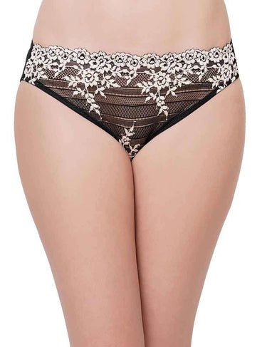 Embrace Lace Low Waist Medium Coverage Bridal Wear Lace Bikini Panty - Black