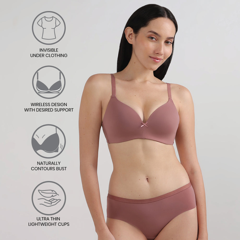 Get effortless comfort with this 3/4th T-shirt Bra from Wacoal’s BASICS range. Featuring smooth finish moulded cups, this non-wired T-shirt bra gives support, an invisible look and ease of everyday wear.