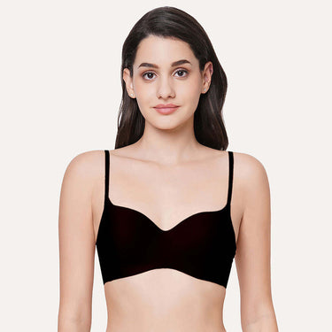 Basic Mold Padded Non Wired 3/4Th Cup Everyday Wear Seamless T-Shirt Bra - Black