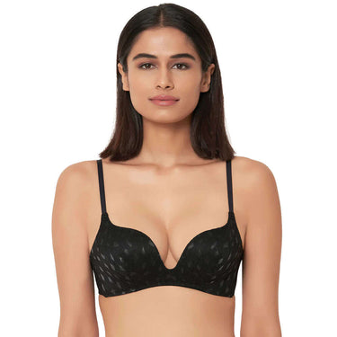 Zephyr Padded Non Wired 3/4Th Cup Push-Up Lacy Plunge Bra - Black