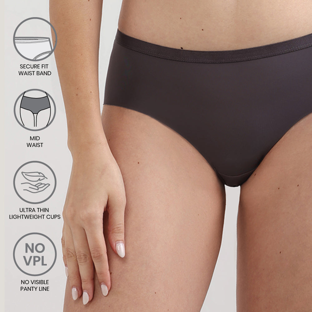 BASICS Zoe Mid-waist Medium Coverage Everyday wear Hipster Panty-Grey