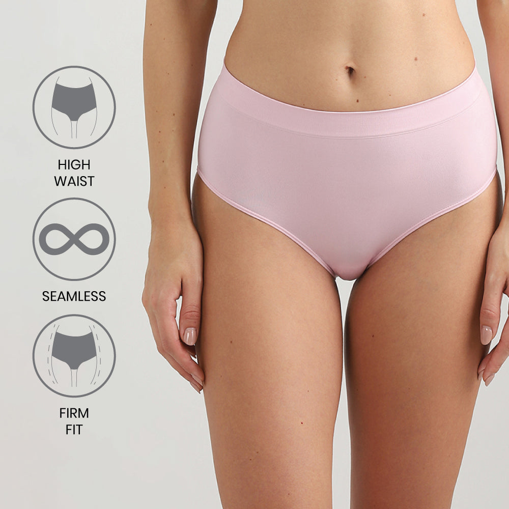 Firm Fit High Waist Full Coverage Everyday Wear Brief Panty-Pink