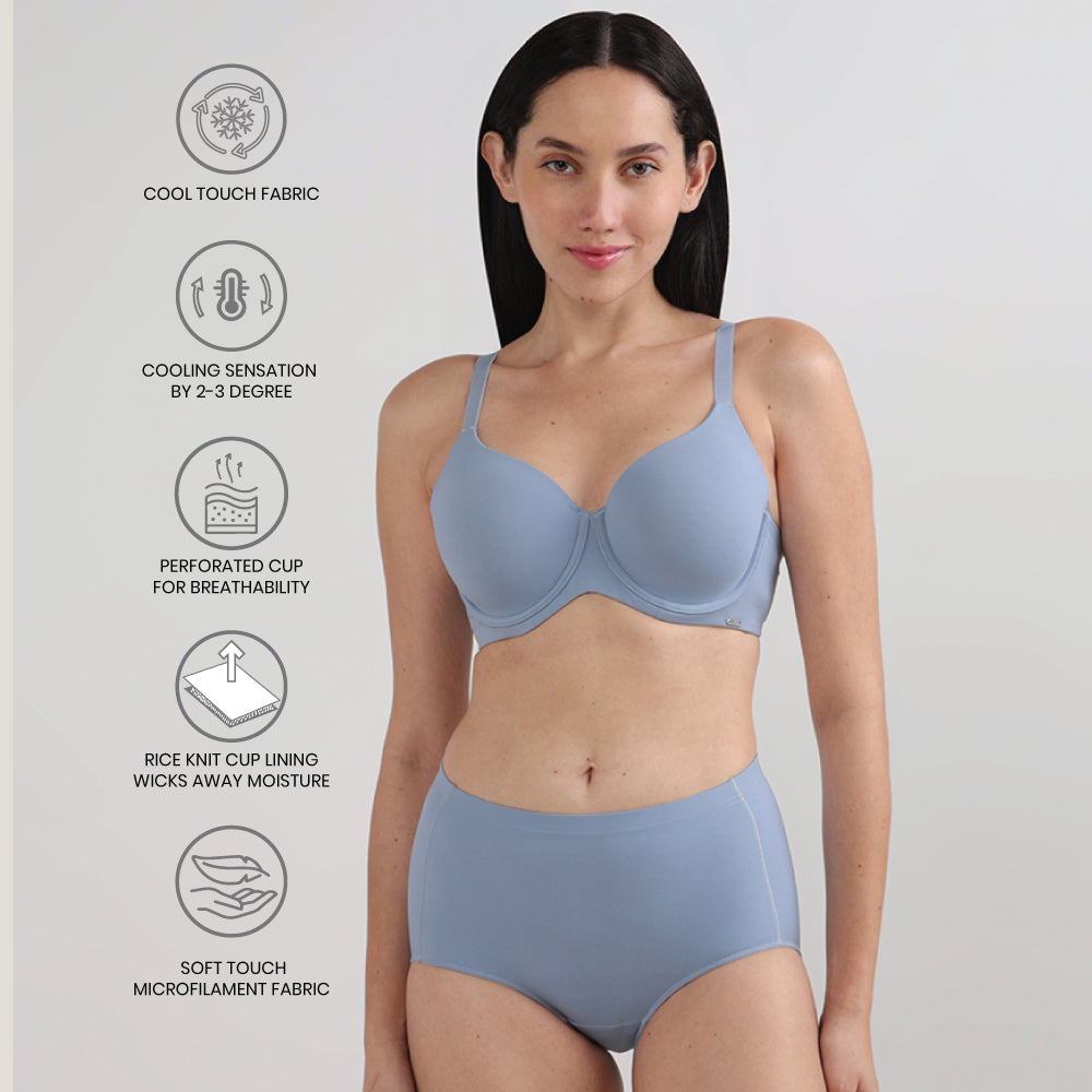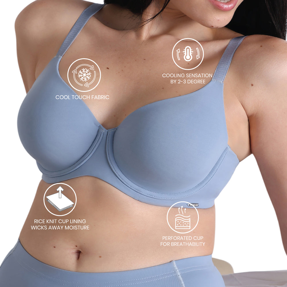 Cool Comfort Padded Wired Full Cup Everyday Wear T-shirt Bra-Blue