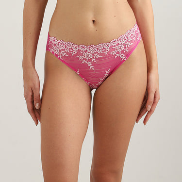 Embrace Lace Low Waist Medium Coverage Bridal Wear Lace Bikini Panty-Dark Pink