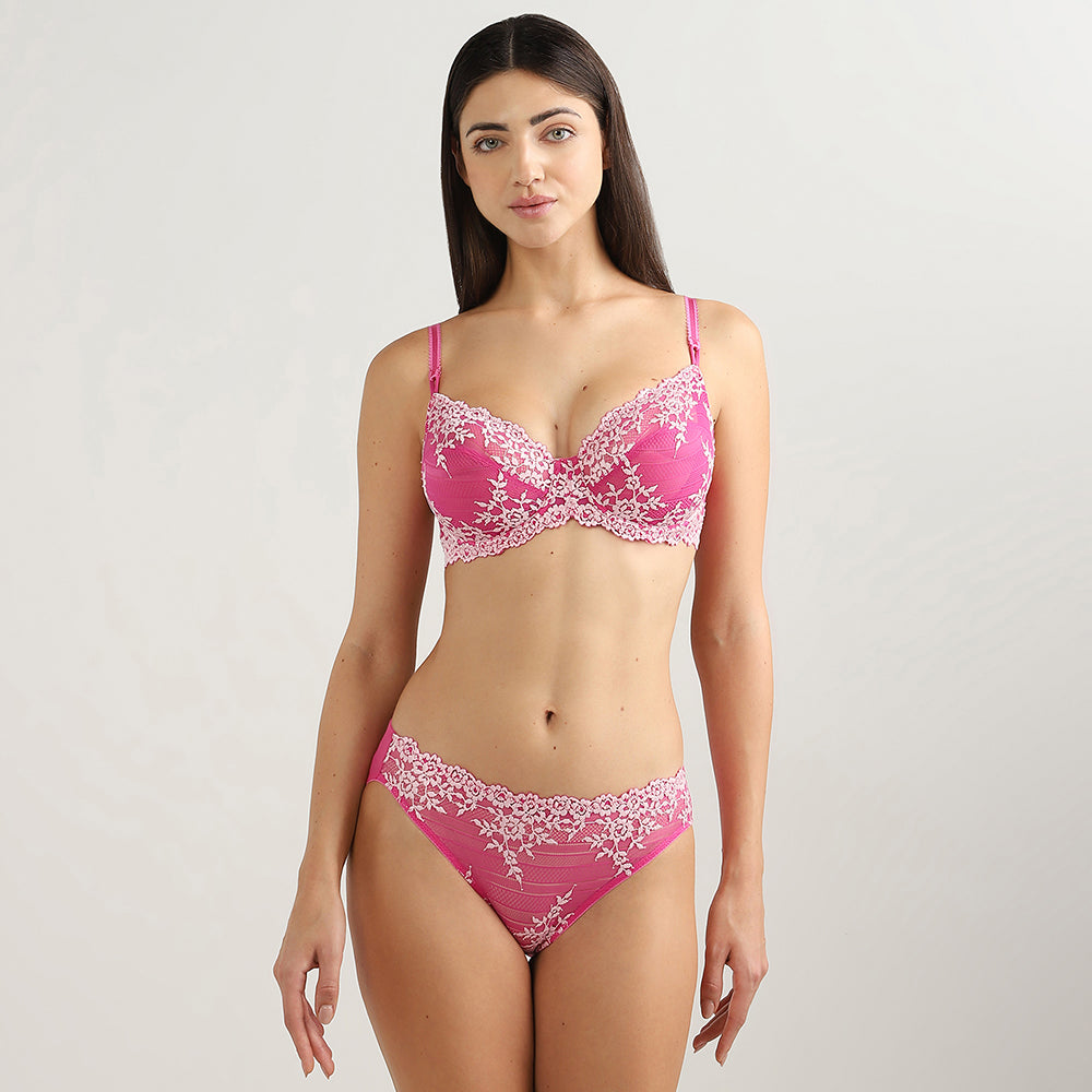 Wacoal’s Embrace Lace collection is sure to add a chic factor to your wardrobe. Signature floral lace and soft mesh give this bikini a pretty look and comfortable feel.