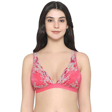 Embrace Lace Non Padded Non Wired 3/4th Cup Bridal Wear Medium coverage Lace Bralette - Pink