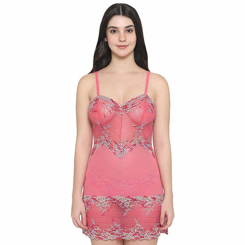 Embrace Lace Non Padded Non Wired Bridal Wear Short Lace Babydoll Chemise - Pink