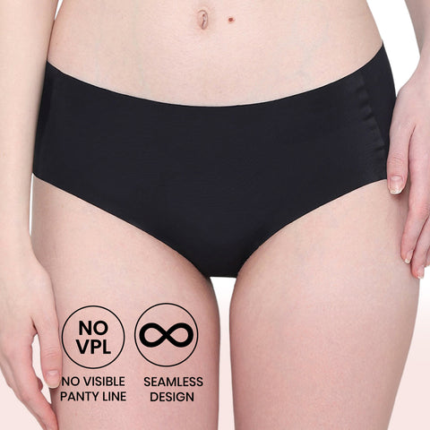 Invisible Comfort Mid-Waist Full Coverage Seamless Everyday wear Hipster Panty - Black
