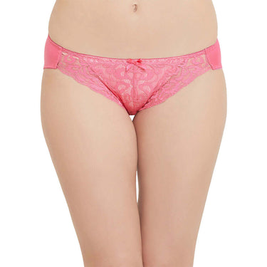 Mystique Low Waist Medium Coverage Bridal Wear Lace Bikini Panty - Pink