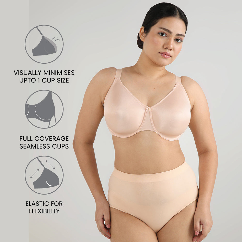 Pixie 2.0 Non Padded Wired Full Cup Everyday Wear Plus Size Full Support Minimizer Bra - Beige
