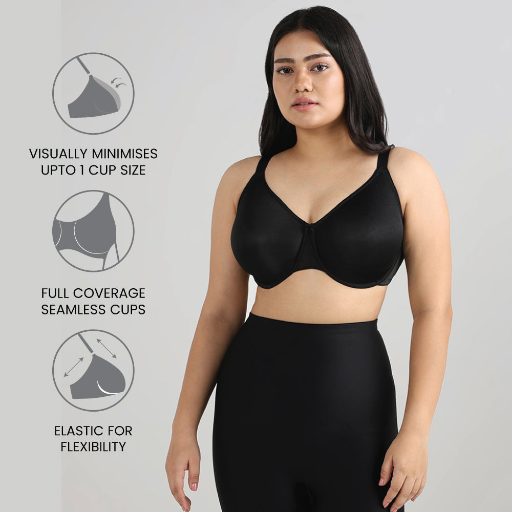 Pixie 2.0 Non Padded Wired Full Cup Everyday Wear Plus Size Full Support Minimizer Bra - Black