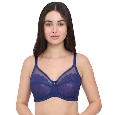 Retro Chic Non Padded Wired Full Coverage Full Support Everyday Comfort Bra - Blue
