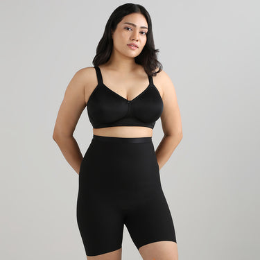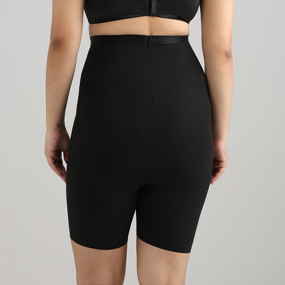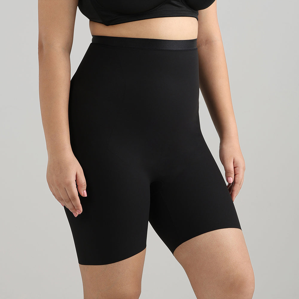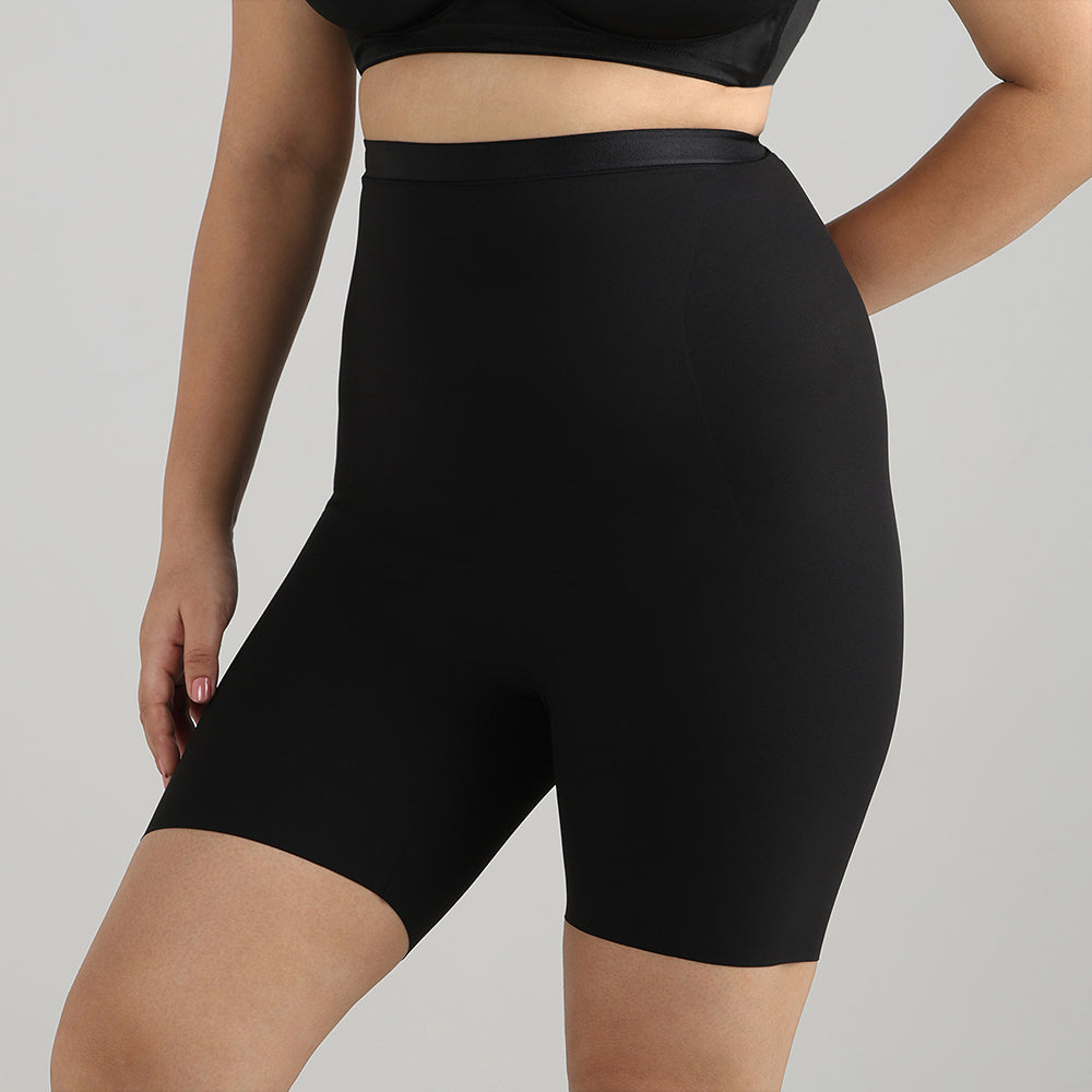 Shape Revelation High Waist Full Coverage Firm Control Seamless Thigh Shaper - Black