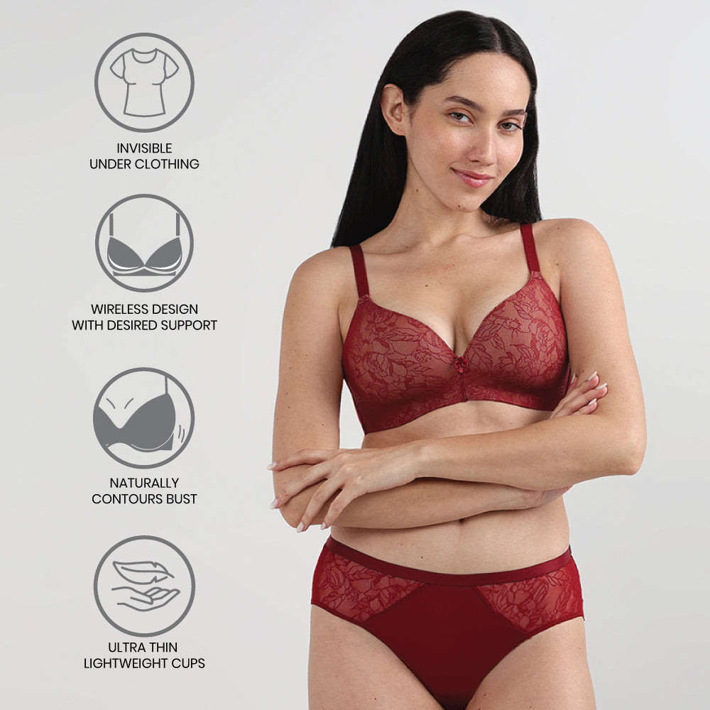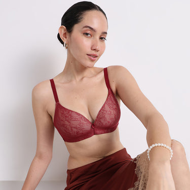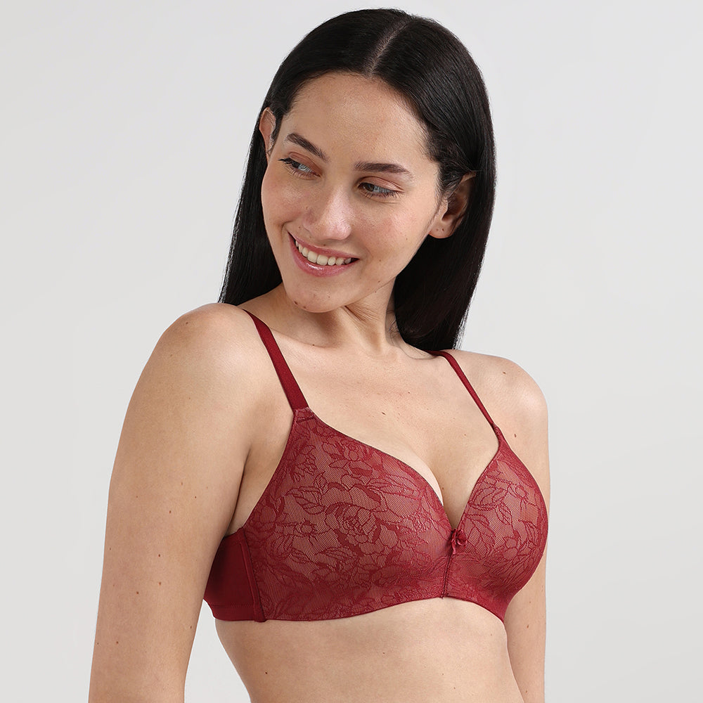 Wacoal Women’s BASICS Zoe Lace Padded Non-wired 3/4th Cup Everyday Wear Comfort Fit T-shirt Bra-Red