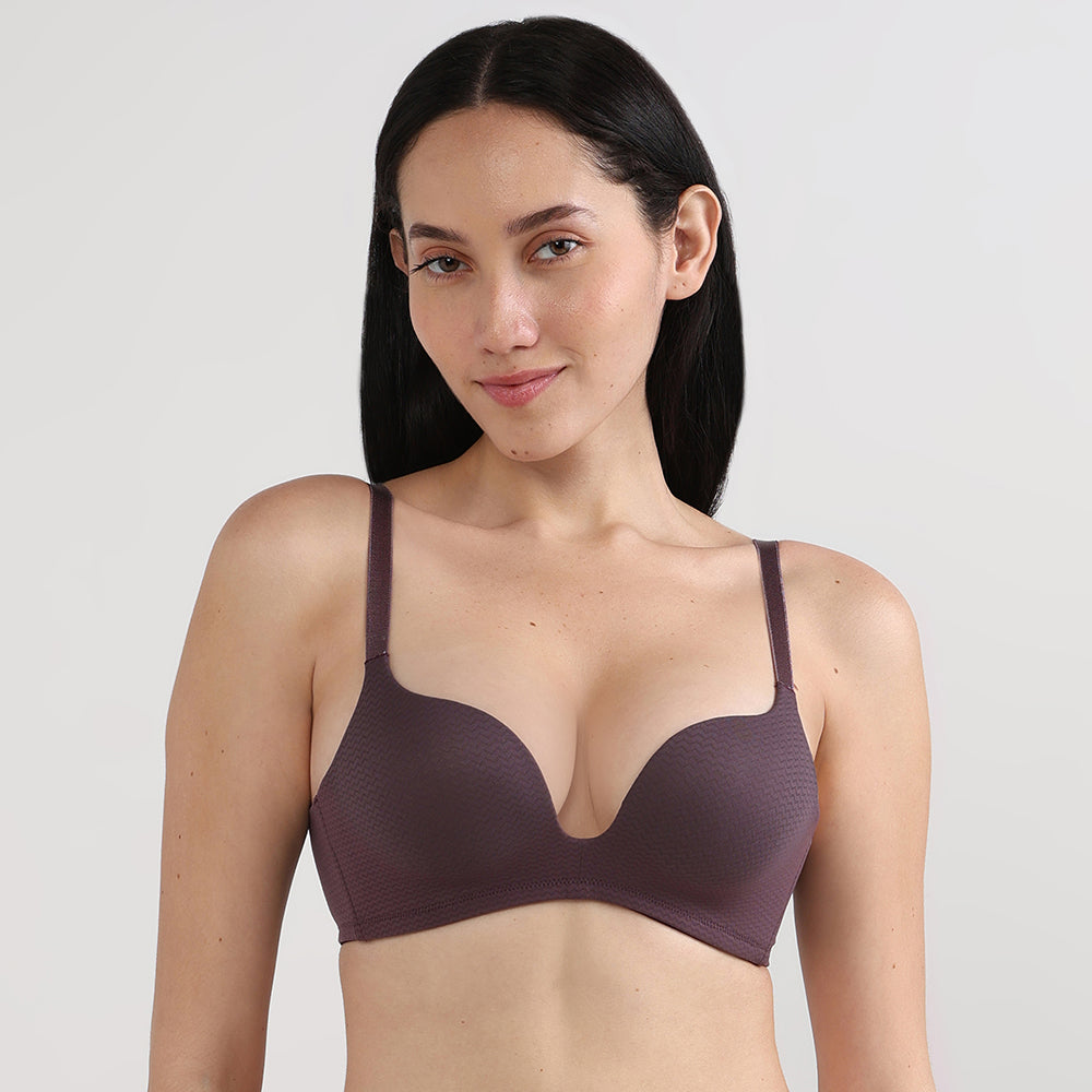 Women’s Dreamy Curve Padded Non-wired 3/4th Cup Everyday Wear Push-up Bra-Wine